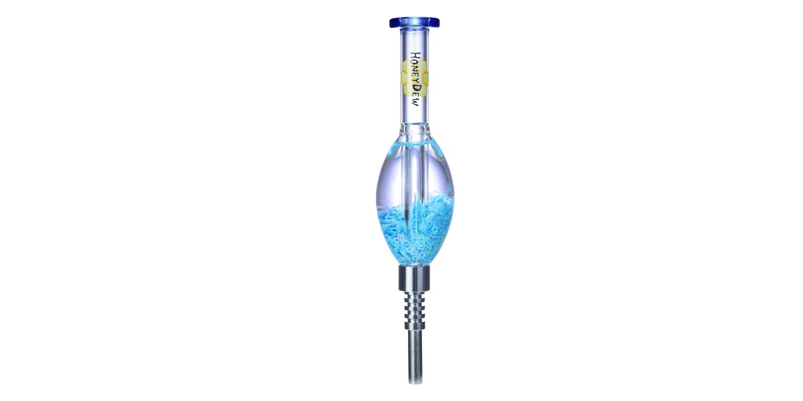 The HoneyDew NC-210 Nectar Collector is designed to stand out — every single color option glows in the dark. Built with a sleek liquid-filled body and a durable titanium tip, it delivers smooth performance with extra flair. Perfect for anyone who wants to add a glow to their sessions.