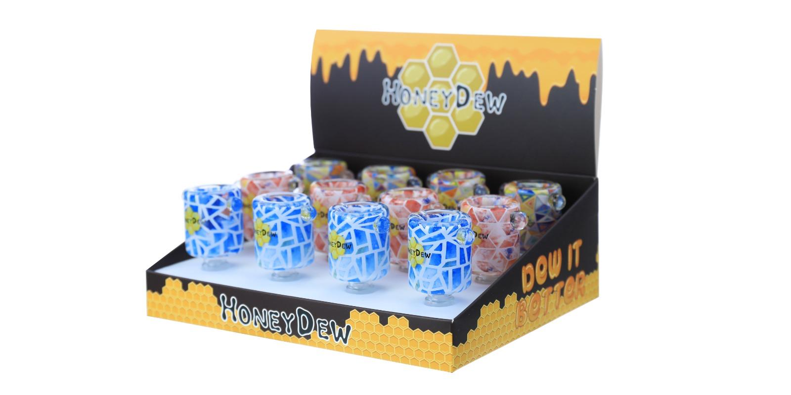 The HoneyDew WPH-811 adds a vibrant mosaic design to the collection, featuring colorful geometric glass patterns with dual side marbles for grip. Each bowl is 14mm and built from thick, high-quality glass for long-lasting use. Packaged in an eye-catching 12-piece display, these bowls are a must-have wholesale item for shops looking to stand out.